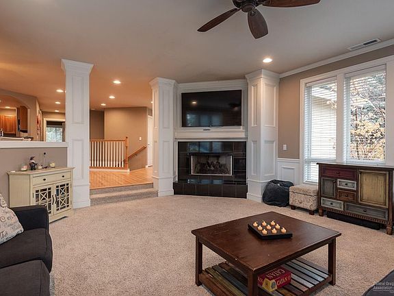 Outstanding floor plan live big or live small. Complete one level living with master suite on the main. Office and living room with gas fireplace. Gourmet kitchen with newer SS appliances, tiled granite counters and hardwood floors. Tranquil outlook from spacious decks for entertaining. Full living on the lower level with family room and bedrooms. Smart house lighting throughout, wifi for the thermostat, blue tooth app for garage. Abundance of storage. Private back yard with multi decks for entertaining. 3 Car garage with storage. Gated community with easy access to town. River trails nearby.