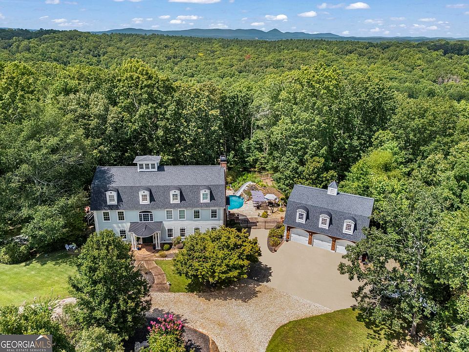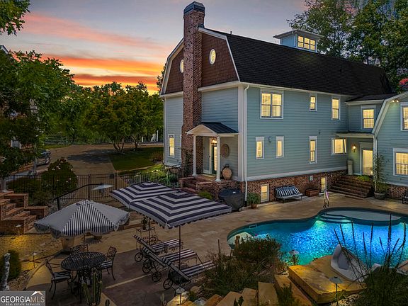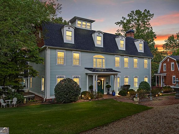 "Timeless Luxury with Modern Indulgence" Welcome to a rare opportunity to own one of Ball Ground's most distinctive estates, an extraordinary Cape Cod-style residence set on 3.76 private acres at the end of a quiet, wooded lane. Just minutes from the charm of downtown Ball Ground, and less than an hour from both Atlanta and the Blue Ridge Mountains, this home offers the perfect balance of retreat and accessibility. Crowned with a widow's tower, the home's striking architectural profile immediately sets it apart. Inside, over 9,000 square feet of refined living unfolds across 8 bedrooms and 6.5 baths, crafted with timeless old-world detail and modern convenience. Highlights include: Heated Saltwater Pool Retreat - Travertine decking, fountains, and wooded/seasonal Mountain views frame a custom-built pool with slide and outdoor shower. Grand In-Law Quarters - A private 3-bedroom suite with its own entrance, driveway, kitchen, dining room, living spaces, laundry, and marble bath. Perfect for multigenerational living or long-term guests. Entertainment at Its Finest - A split-level theater room designed for cinematic immersion, plus expansive wraparound porch, fireplaces, and outdoor gathering spaces. Expansive Grounds - Trails, fruit trees, berry bushes, and even a private shooting range create a lifestyle as active as it is serene. Chef's Domain - Wolf induction oven with hood and pasta arm, dual dishwashers, multiple pantries, and over 2.5 kitchens for culinary flexibility. Superior Craftsmanship - Real hardwood and marble floors, wainscoting, Crawford ceilings, clawfoot tub, and custom mantles throughout. Additional Touches - Tesla charger, full workshop, studio space, hardwired security and fire system, and a spiral staircase to the widow's peak with breathtaking views. The primary suite offers a true retreat with two walk-in closets, a full dressing room, and a spa-inspired bath. Designed for multigenerational living, entertaining, and private retreat alike, this estate blends Cape Cod elegance with the comforts of modern luxury. It is not just a home, but a landmark property, Ball Ground's true diamond.