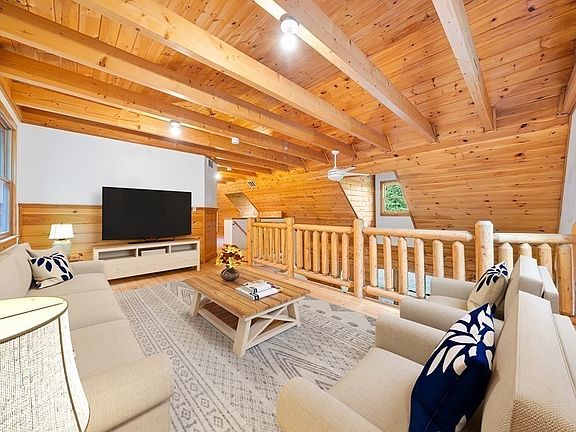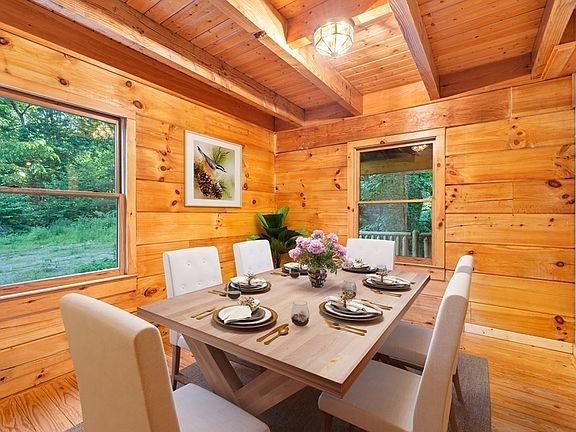 A one in a million opportunity! This amazingly built LOG Home is personal oasis offering treasured privacy, peace & unabundant nature! Over 3 acres of land, the long, scenic drive meanders down to the circular drive & the huge Farmer's porch welcomes friends & family alike! This home boasts soaring ceilings, rustic wood floors, exposed timbers, C/A, heated flrs, C/V & so much more. 3 BDRMS & 2 gorgeous tile & granite baths along with a fabulous 20x17 great rm, perfect for relaxing & entertaining. The eat-in kitchen flows into an inviting diningrm, perfect for Sunday suppers! Dine alfresco on the huge private cover porch! Flex. flr plan offers a 1st flr bdrm w/full bath, 2nd flr familyrm, home office area & dramatic vlt'd master bdrm w/slider to your own balcony to sip morning coffee! A spa like bath too! HUGE basement with a wall of windows is perfect for potential finishing. NATURE Lover & Gardener's PARADISE with vast biodiversity & your own blackberry patch! 4 bay GARAGE/workshop