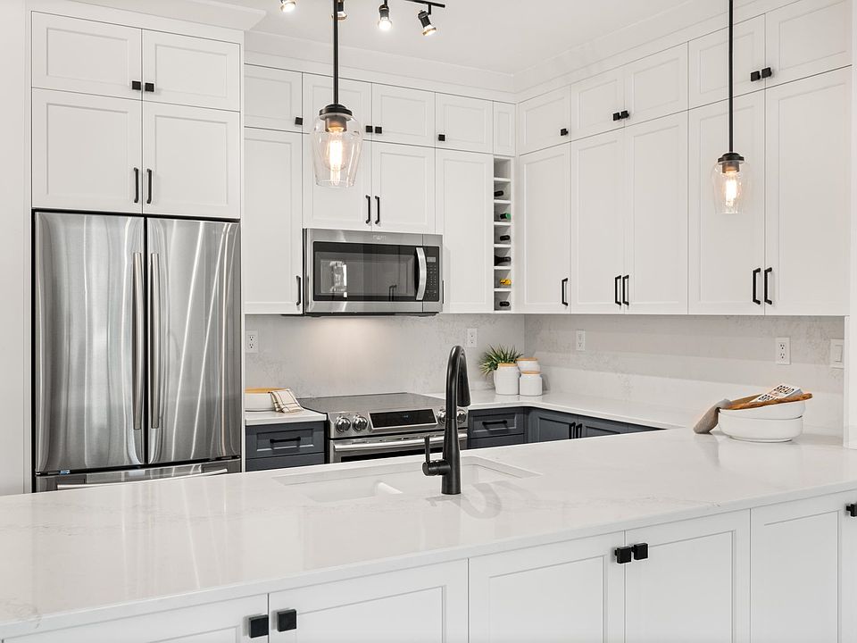 BONUS 2 lockers & 1 secure U/G! Spectacular 2 BDRM 2 BTHRM condo-completely transformed! Soaring 9-ft ceilings enhance the open layout, gorgeous chef’s kitchen featuring full-height custom cabinetry, Caesarstone quartz counters w/ matching backsplash, built-in pantry w/ roll-outs & luxury vinyl plank flooring throughout! Both bathrooms shine w/ designer tile, custom cabinets, mirrors, & a sleek frameless glass shower. BDRMS have custom closets w/ barn doors, lighting, new interior doors, baseboards, custom window coverings—including remote-controlled blinds in the LR. BONUS 2 private balconies w/ park views, just steps to Queen’s Park, transit, shopping, schools, restaurants & the new dog park! Amenities include Gym, Clubhouse, media room & visitor parking!
