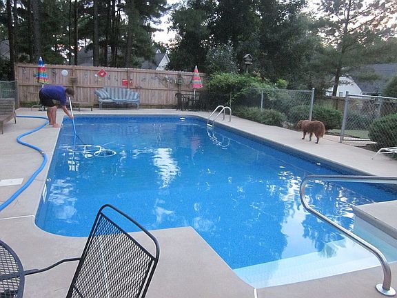 4 Bedrooms, 2 baths with separate shower/freestanding claw foot tub, Master bath updated 2020, privacy fence around small garden & new liner for inground pool with pool house/utility storage, polaris self cleaning pool cleaner, chain length fence around perimeter of property line, french doors lead to screened back porch attacked to deck, 300+ square feet of unfinished space in cathedral ceiling attic space with stairs in kitchen, new gutter system, new water heater. all new appliances.