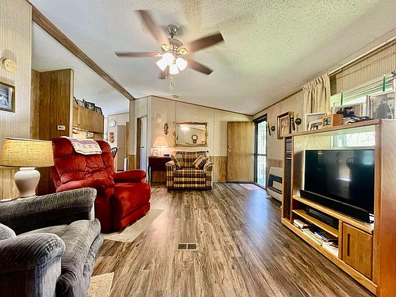 Back on Market. Lovingly Maintained 2BR/2BA Manufactured Double Wide Mobile Home Sitting Upon 1 Peaceful Acre Offering Plenty of Room to Garden, Play or Rest. Home Offers: Covered Front Porch w/Built-In Seating and Swing; Luxury Vinyl Plank Flooring; Spacious Kitchen w/Breakfast Bar; Great RM w/Gas Furnace; Split BD Floor Plan. HVAC, Metal Roof & Windows New 2019. Gutters. Detached Workshop w/Electricity. Fenced in Backyard w/Gates. Gravel Drive w/2 Car Covered Parking. Septic was pumped 3/2024.