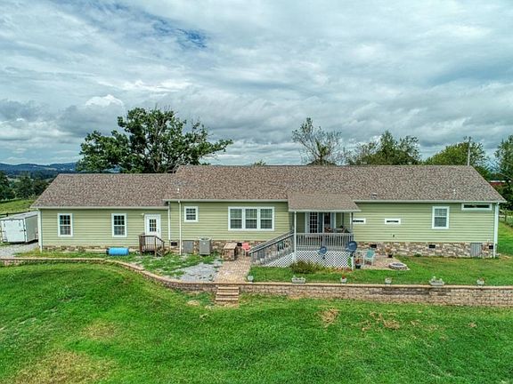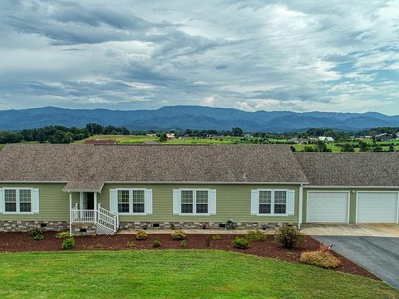 Amazing views await you in this split designed three bedroom, two bath ranch. Home was built with 2X6 siding and the oversized garage is insulated with floored storage space above. The kitchen has generous amount of counter space with five burner gas range/double oven, roll out cabinets, walk in pantry and new farm style sink. The master suite will amaze you with two walk-in closets, pocket doors, a beamed ceiling and a 7x4 tiled shower with rainfall shower with bench. The home also has a formal living room as well as 20x15 family room. Open concept with the 9ft.ceilings make this home open and airy. For your entertainment, you'll also love the gas fire pit outside the back deck.See yourself the details this home has to offer! Quiet country located between Jonesborough and Greeneville.