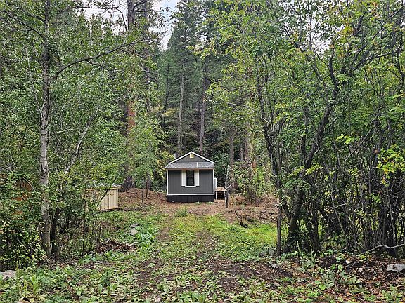 There are places so rare they feel touched by something otherworldly, and this is one of them. Sixteen acres of enchanted ground unfold here, where Sawmill Creek sings its eternal song across more than a thousand feet of frontage. The water winds past moss-draped rock outcroppings that seem to belong in a fairytale, while ancient ponderosa pines rise like sentinels along the hillside. A trail leads upward to the crown of the mountain, where the view stretches from Rogers Pass to the Sleeping Giant, a panorama so vast and unbroken it feels like standing at the edge of a dream. The land itself has been shaped with reverence—clearings made with care, rockwork set with pride, every detail in quiet harmony with the wilderness that surrounds it.