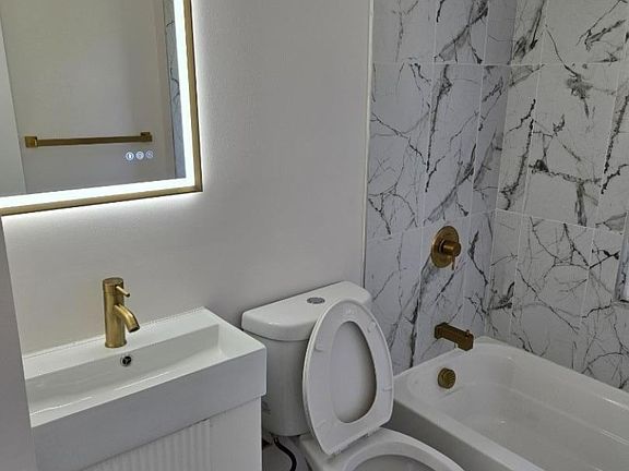 Finished basementBackyard and outdoor spaceCentral air and heatingMarble-style finishesGold accentsLaundry connectionsWalk-in closet