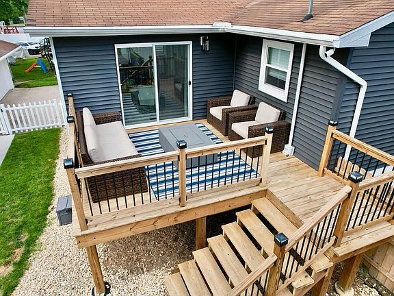 Next door to everything! Close to all that Crown Point has to offer e.g., Bulldog Park, quaint downtown square with restaurants and shops, and Lake County Fairgrounds. This 4 bed/2 bath home has been completely remodeled including new flooring throughout, updated doors and trim, and modern recessed lighting/light fixtures. The open-concept gourmet kitchen features large 7' island/breakfast bar, new cabinets, quartz countertops that extend up the backsplash for a clean, elevated feel, farmhouse sink, SS appliances (included), and offers a large dining area. Great for entertaining! The family room provides sliding door access to back deck (2021) and features cozy area with gas fire pit table (connected to gas line so no need for refillable tanks). The large master bedroom features a 7x14' walk-in closet. All new plumbing and electric, new siding, and 2.5 car heated garage....this home has been well-maintained and updated! Hi-tech capabilities of this home include Arlo security cameras, smart thermostat, smart indoor/outdoor lighting, and wireless back/garage door entry that can be controlled from the convenience of your phone. If you've been searching for a home in a great location and move-in ready, this is it!