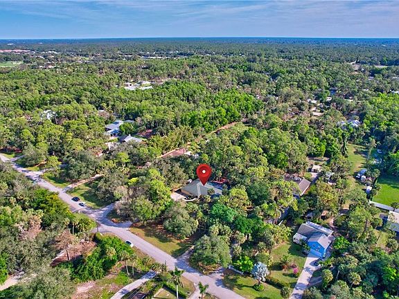 Rarely available 2.27 acres of land less than 10 minutes from downtown Naples and the beaches. Once referred to as the "original estates", this Eastern exposure property has just shy of 2,800 sq feet under air. The updated home features three gracious bedrooms with a split floorplan, two full baths, a sizeable great room along with a den/flex room and private home office. The chef's kitchen with two waterfall islands boasts high end appliances (Gaggenau and Electrolux) and custom cabinetry along with quartz countertops and backsplash. The oversized salt water pool and screened lanai offers additional covered space for entertaining. Other impressive updates include a newer shingle roof (5 years), a new full house Reverse Osmosis system with a 500 gallon tank, a 1 1/2 year old A/C system with new duct work, and a recently installed septic drain field. The land is partially cleared with a dedicated fenced area for pets and children. With no HOA, no fees or restrictions, the possibilities for this property are endless.