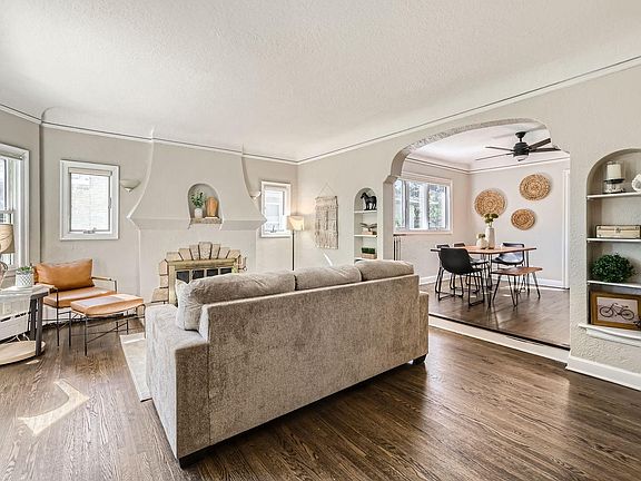 Nestled in the heart of Minneapolis, this charming 5-bedroom, 3-bathroom residence offers an ideal blend of comfort and convenience. Step inside to discover a spacious living and dining area, accentuated by large windows that bathe the room in natural light. The kitchen boasts stainless steel appliances, ample cabinets, and a cozy breakfast nook perfect for morning gatherings. Hardwood floors grace the family room, dining room, and main-level bedrooms. The lower level family room includes a second fireplace and a convenient kitchenette which could easily function as a separate living space, featuring its own small kitchen, bath, bedroom, and family room—perfect for guests or in-laws. Outside, a rear porch overlooks a detached garage and expansive concrete driveway, ensuring ample parking. With easy access to I-35W and I-694, plus nearby dining, supermarkets, parks, and golf courses, this home is a haven of modern living.