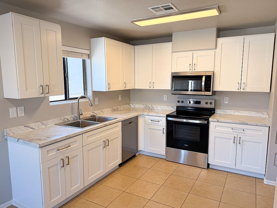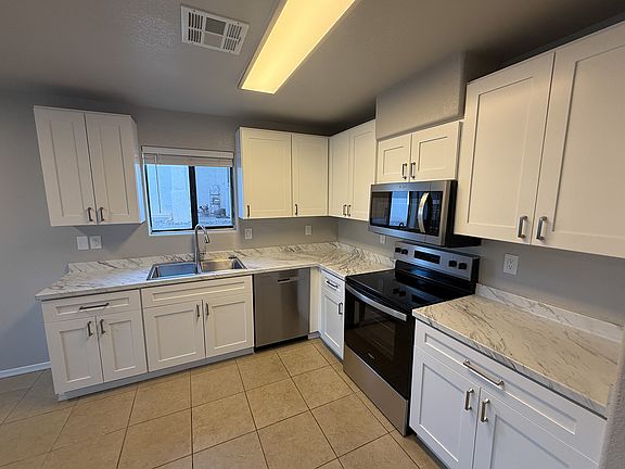Updated 2-bedroom, 2-bath home with a one-car garage, walking distance to Havasupi Elementary School. The home features new cabinets, new countertops, fresh paint, tile throughout, a fenced backyard, and lake views.