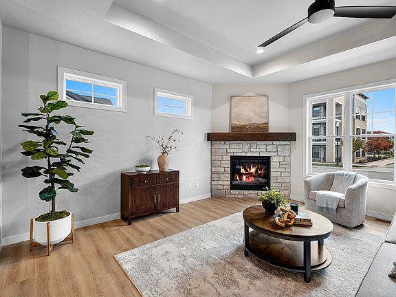Enjoy the privacy & convenience of this impressive Townhome in desirable location near Howard Commons & walking trails! Zero-step entry w/ attached 2-car finished garage. Townhome features open concept design for entertaining along with beautiful corner fireplace in Great Room for those cozy evenings at home. Inviting kitchen offers large center island & abundant storage. Primary bedroom features an ensuite with private bath complete with dual sinks & roomy walk-in closet. Covered patio off the dining area adds desirable outdoor living space. You will appreciate the extra room to relax & entertain in the finished LL with large Rec Room, 3rd Bedroom & Full Bath. Lawn Maintenance & Snow Removal included. Zero lot line property. Move in & enjoy carefree living!