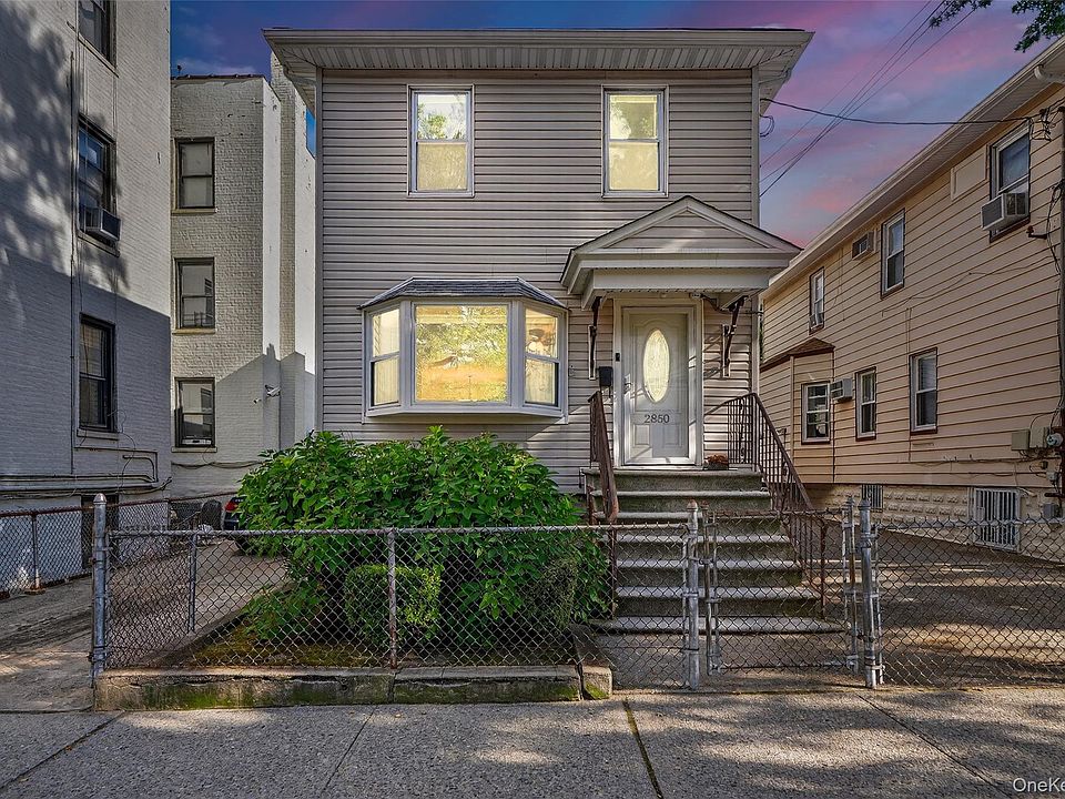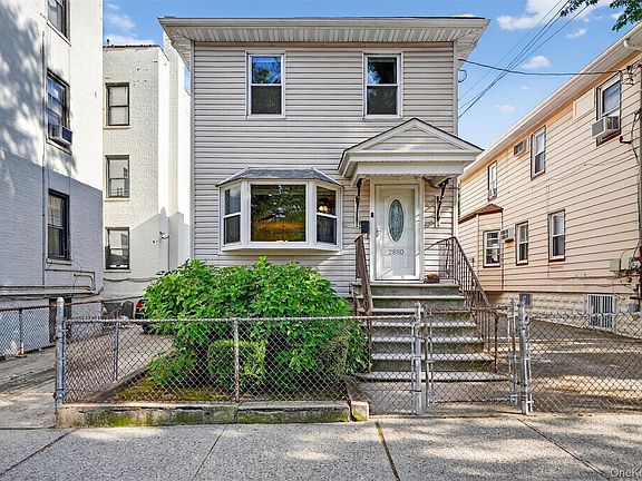 Welcome to 2850 Harrington, a beautiful detached single-family home located in the heart of Pelham Bay in the northeast Bronx. Priced to sell and turnkey ready, this home has many features including a large living room with a wonderful bay window allowing for abundant natural light. The stylish espresso-tone remodeled kitchen soft close cabinets with crown molding, granite countertops, energy efficient stainless appliances, pendant lighting and a large cooktop island with an exhaust hood. The open concept living and dining area can accommodate large gatherings and includes an exposed brick wall accent and wainscotting for extra flair. There is also a convenient first floor half bathroom. The second level has 3 bedrooms and 1 fully renovated bathroom. The primary bedroom features radiant heated floors and a double closet, 2nd bedroom has a custom mirror closet with multiple shelves great for organizing, the 3rd bedroom has double door closet space. Both the bathroom and bedrooms have radiant heated floors for those cooler mornings. Ample sized pull-down attic for storage with a traveling stool chair to get around. The lower level is unfinished and has a nicely appointed laundry room with utilities and room for a workshop. There is potential for additional living space, home office, gym or playroom. Outside space features a deck and a patio for entertaining and BBQs. Fully fenced yard with a long driveway fits up to 3 cars plus a shed for storage. Bonus Features Include: dial zone central air split unit, high efficiency tankless boiler hydronic forced hot air, water pressure. There is a lifetime warranty for the windows that transfers to the new owners. Located nearby shopping, restaurants, major highways, and trains. Good proximity to NYC for commuting and airports for easy travel. Enjoy Pelham Bay Park, Orchard Beach, City Island, The Bronx Zoo, Botanical Gardens and so much more! The Bronx is full of life and excitement, make this your new home!