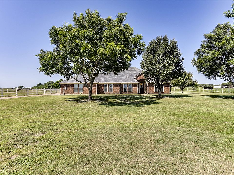 Don't miss the opportunity to own this unique property that combines the best of both worlds-peaceful acreage living with amenities just minutes away. A neat & clean custom home sitting on 5+ acres within the city limits of Waxahachie near Lake Waxahachie! 3 bedroom, 2 bathroom flexible floor plan with 2 living & 2 dining areas. Spacious open floor plan with modern kitchen, living, & dining. Split bedroom arrangement. Second living area has a wall of windows with lovely views of the wide open spaces. Step outside to find everything you need for a serene & practical lifestyle. The property includes a 4 stall horse barn, tack room, wash rack with full bath & kitchenette, perfect for equestrian enthusiasts, a detached insulated shop ideal for hobbies or additional storage. Fully fenced with a gated entrance. A short drive to charming & historic downtown Waxahachie where you can dine, shop, & play...also not far from I-35E for an easy commute to DFW. Pride of ownership shows!