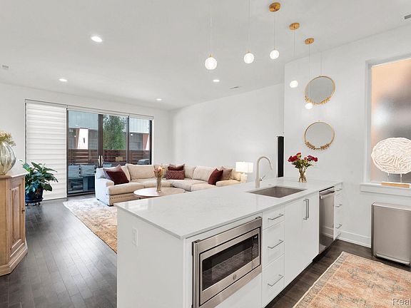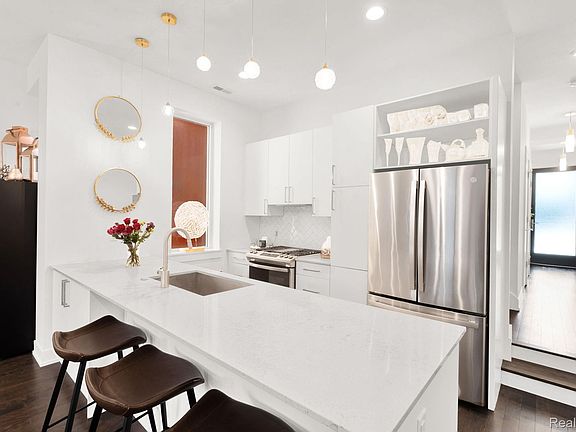 A rare find in City Modern—a beautiful and stylish 2 bedroom/3.1 bath townhouse features the only floor plan of its kind in the neighborhood. This home offers a bright and spacious layout with clean modern finishes and designer lighting. The main level features open-concept living room with a sleek kitchen with quartz countertops, soft-close cabinets and stainless steel appliances. There’s also a convenient half bath on this level. Upstairs, you’ll find the spa-like primary suite with balcony to enjoy your morning coffee. The en suite bath has a large tile shower. The second bedroom and another full bath are also on this level. Let’s not forget the loft space that could be a family room or a sitting area. The third level adds a flex space with another full bath—perfect for a third bedroom, gym, or office. The private rooftop deck is a showstopper with incredible views of the city. There’s an attached one car garage with plenty of storage. Don’t forget the 24-hour private security. Just steps from Detroit’s best—Little Caesars Arena, Comerica Park, Bodega, Lena and Grey Ghost. This one truly has it all!