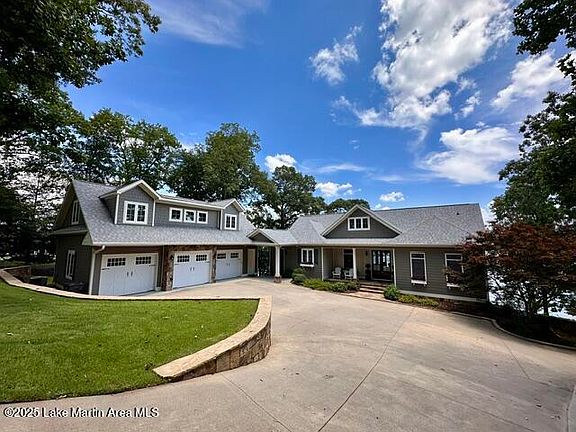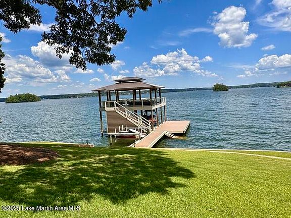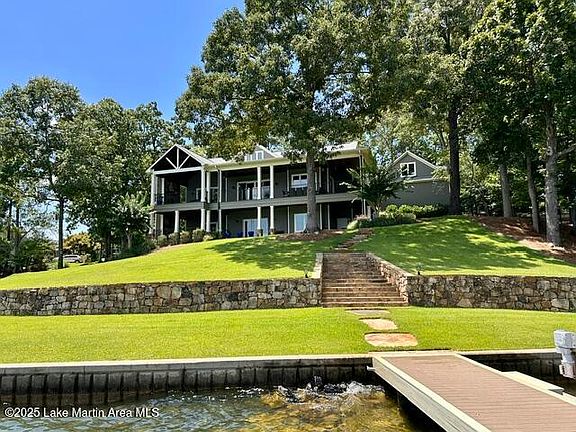 This distinctly unique home on East side of Lake Martin is everything you're looking for with a custom lake home. Amazing views with deep water year round, gently sloping lot from the house to the water with 243' of waterfront and a full boat ramp. The designer covered 2-story dock has 270 degree big water views with plenty of entertaining space, sun decks, custom lighting, jump gate, 2 high speed boat lifts, 2 WaveRunner lifts & 2 easy entry water staircases. The 4 bed/3 bath/2 half baths house plus 1 bed/1bath apartment over the finished 3-car garage is over 5,100 total sq.ft. Also included: 2 large covered porches with 2 stone fireplaces,10' and higher ceilings, open floor plan, 2 living areas, lake level bar.