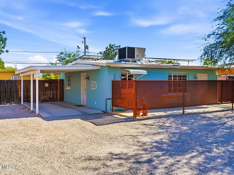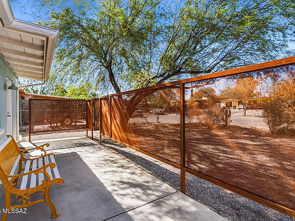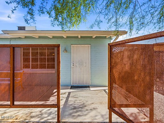 The Laurel Bungalow - A midcentury gem with modern updates, this 2-bedroom, 1-bath home sits on a spacious lot in central Tucson. Close to shopping, dining, and the city's arts and university districts. Home to a Tucson-based artist, it features a detached 144 sq. ft. studio/workshop with heating, cooling, and abundant natural light (not included in the home's square footage). This versatile bonus space is perfect for art, work, fitness, or hobbies.Inside, exposed wood beams, a remodeled bathroom with a walk-in shower, and a modern kitchen with Corian counters, deep drawer storage, and a farmhouse sink blend character and functionality.Upgrades include new plumbing throughout, a tankless water heater, water softener, and Tesla leased solar to help lower energy costs. The fenced front patio offers privacy, while the low-maintenance back yard provides space to enjoy or personalize.