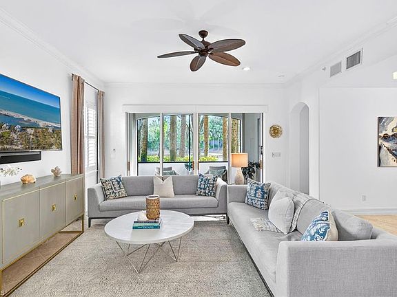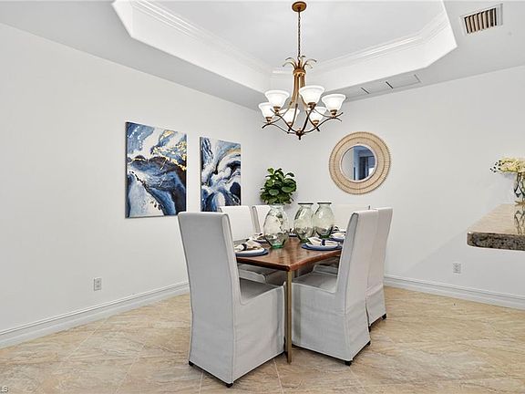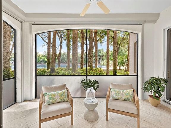 GOLF COURSE AND WATER VIEWS!! Welcome to Castillo at The Ritz-Carlton Golf Resort, Tiburon, where class and elegance converge in this immaculate, partially furnished, first-floor end unit. This exquisite home boasts a secluded open floor plan featuring THREE BEDROOMS, two full baths, a dining room, and ample storage space. Experience the comfort and feel of a single family home with an attached two-car garage and private entry. The interior is adorned with porcelain tile flooring, high ceilings, crown molding, and plantation shutters, adding a touch of sophistication. The well-appointed kitchen is a dream for a property of this size, complete with granite countertops, white cabinetry, built-in wine cooler, stainless steel appliances, gas stove, and spacious island. Unwind in the oversized owner's suite, which includes a walk-in closet and a slider leading to your lanai.The spa-like bath offers double sinks, shower, and separate tub, providing a perfect retreat. Additional features of this exceptional property include a newer roof, a tankless hot water heater, and a U/V air purifier, ensuring comfort and peace of mind. Embrace luxury living at its finest in this remarkable home.Tiburon boasts 36 holes of Greg Norman-designed championship golf, concierge services, restaurants, fitness center, spa, tennis and private beach shuttle. Tiburon is located close to beaches, world-class shopping and dining. GOLF & SOCIAL MEMBERSHIPS are IMMEDIATELY available, but not required to live in the community. Just 3 miles to Vanderbilt Beach and 1.5 miles to the shops and restaurants at Mercato.