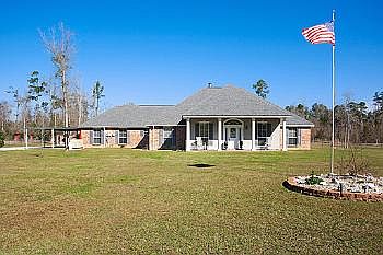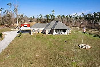 COUNTRY ESTATE! 4.5 ACRES Super easy commute on I-12. This lovely home features 5 bedrooms and 3.5 baths.True Guest Suite that's ADA designed. Split/Open floor plan. Large Chef's kitchen w/S/S appliances, lots of cabinets, farmhouse sink, granite countertop and large pantry. Frm dining & Great Den w/fireplace. Covered front and rear porches. The garage is tiled, has heat/ac and insulated. Steel workshop 25x30, 25k generator. New HVAC system. Stocked pond. NO HOA! Flood Zone C. CALL TODAY!