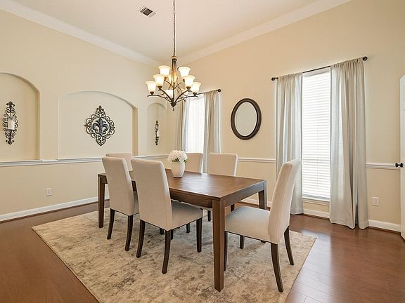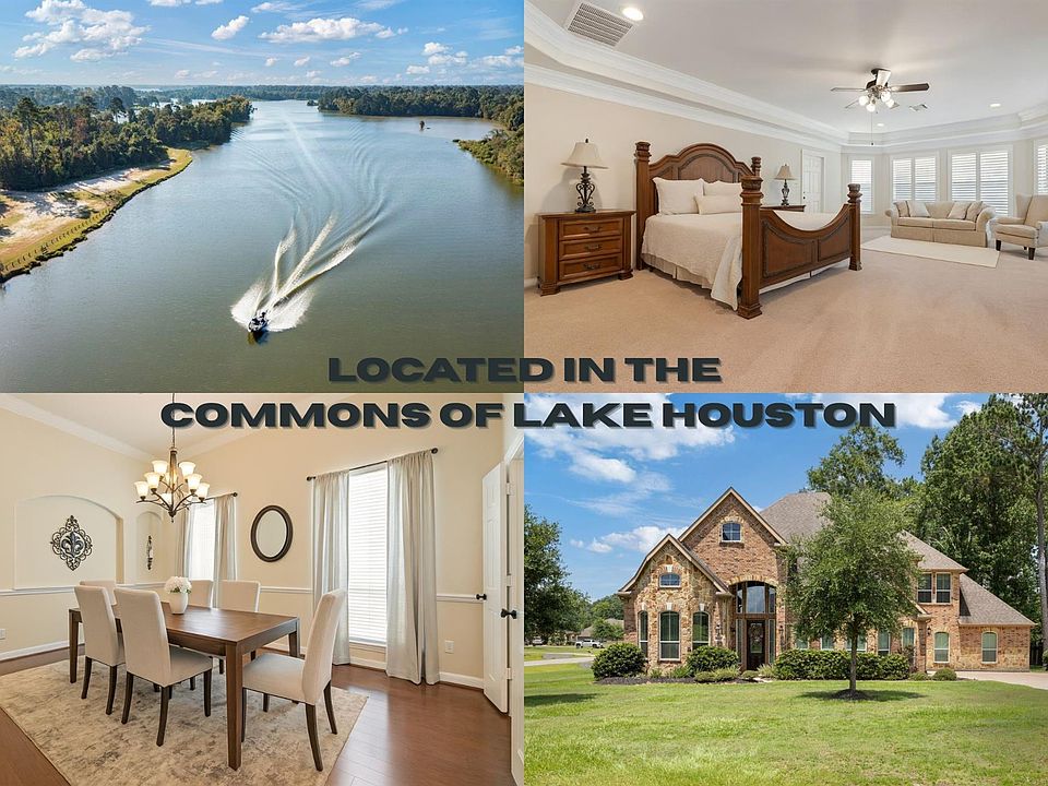 Gracefully set on a prominent corner lot in The Commons of Lake Houston, this crafted residence unites refined comfort with nature, and it has never flooded. A soaring foyer opens to luminous, free-flowing living areas with long sightlines and abundant windows. The gourmet kitchen showcases granite countertops, extensive cabinetry, and a generous dining area ideal for hosting. A dramatic stone fireplace anchors the family room with inviting style. The serene primary suite offers patio access and a spa-inspired bath with dual vanities, soaking tub, and separate shower. An upstairs suite provides valued privacy for guests or multigenerational living. Step onto the enclosed porch or extended patio and savor the tranquility beneath mature trees. A bonus second garage is perfect for a boat or outdoor gear. Moments from Lake Houston, residents enjoy two private boat launches, 24 miles of wooded trails, and vibrant community events. Luxury meets laid-back lakeside living.