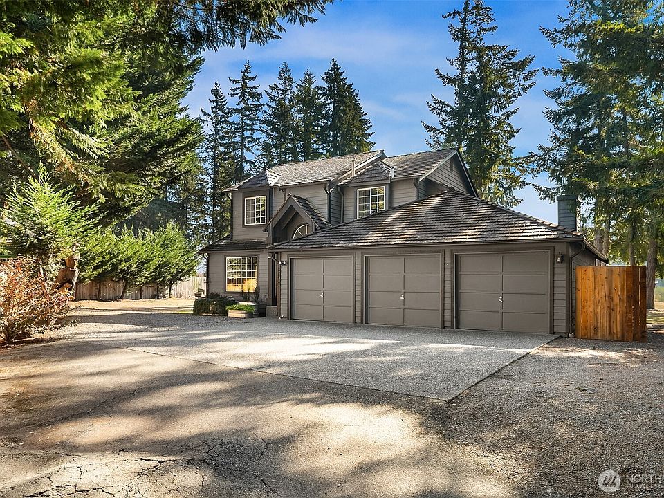 Spacious 2.6-acre property with room to roam, play, or enjoy your own pasture—perfect for equestrian or outdoor living! Watch wildlife and enjoy privacy in this peaceful setting. Massive detached building ideal for a car collection, RV storage, workshop, or game room. Incredible acreage value! Includes RV parking and 3-car garage. Inside features an open layout, updated kitchen with granite counters, SS appliances, and bright eating area. Primary suite offers a remodeled 5-piece bath and walk-in closet. Gas fireplace, A/C, instant hot water & more!