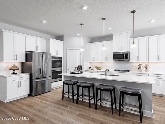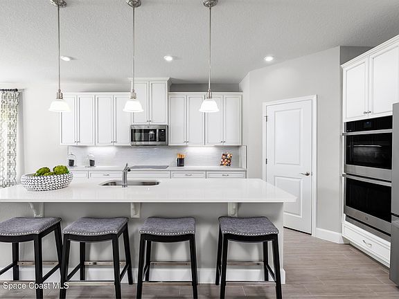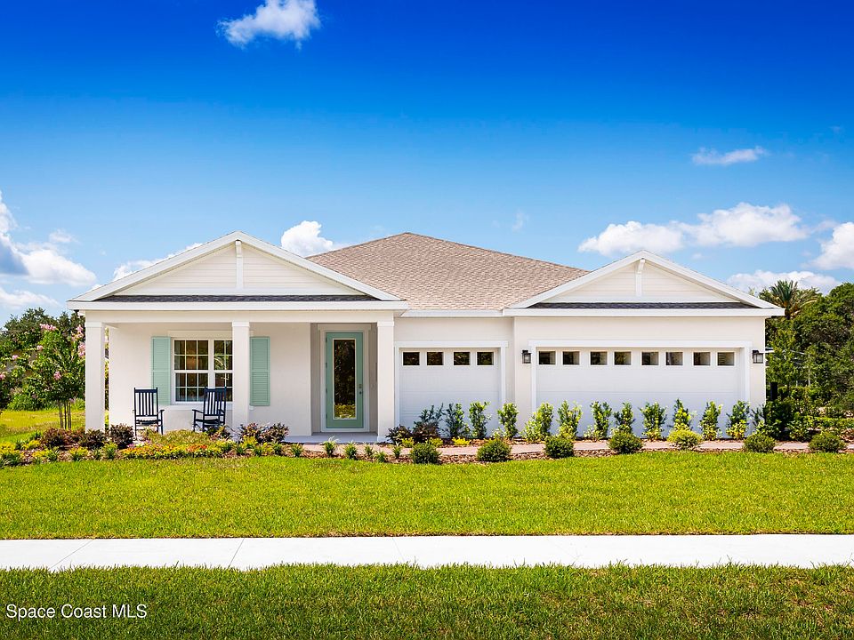Brooks Landing. Close to area beaches, recreation & entertainment. Near Chain of Lakes Park, Indian River Lagoon, & Kennedy Space Center. The Sandalwood single-family home sets the standard for main-level luxury. Your convenient family entry welcomes you inside to unmatched space and style. A full bath sits between 2 bedrooms, while a guest suite with a full bath is found off the 3-car garage. The versatile flex space upgraded to a study. Your gourmet kitchen includes a large island overlooking the dining space and the family room, ideal for gathering with family and friends. Your luxurious owner's suite features a double vanity bath and massive walk-in closet, plus private access to the rear lanai. WIFI-enabled garage opener and Ecobee thermostat. STOCK PHOTOS, PRICES SUBJECT TO CHANGE. Closing costs assistance with use of Builder's affiliated lender.