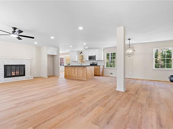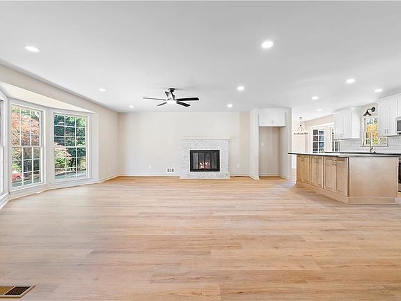 Welcome to this beautifully remodeled 3 bedroom, 2.5 bath home offering over 2,100 square feet of stylish, functional living space. Step inside to an open concept layout filled with natural light and warm, neutral finishes throughout. The spacious living area features a cozy painted brick fireplace and expansive bay window, creating the perfect setting for relaxing or entertaining. The stunning kitchen boasts shaker cabinetry, sleek black countertops, stainless steel appliances, and an oversized island with ample storage, seamlessly connecting to the two dining areas overlooking the backyard. The primary suite includes a beautifully updated bathroom with dual vanities, modern lighting, and a walk in tiled shower. Downstairs, you’ll find a large unfinished basement with endless possibilities for storage, a workshop, or future expansion. The home’s exterior features fresh paint, a large front lawn, and a level backyard with a brick patio, ideal for outdoor gatherings. Conveniently located near shopping, dining, and major highways, this thoughtfully renovated property blends comfort, style, and functionality and is waiting for its next owner to come home!