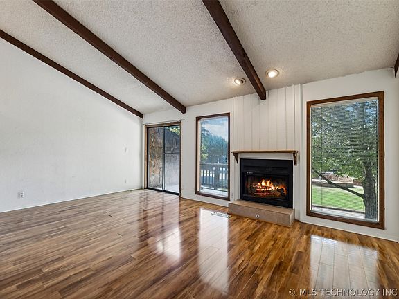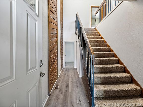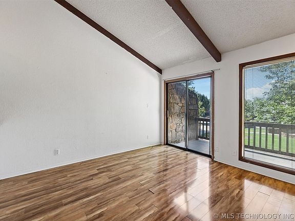 Come and tour this townhome in the after Jenks school district! 2 large bedrooms, 2 full baths, 1 car attached garage. The outside has also been updated with a new roof, new balcony, and new paint, new gutters and garage door! This unit has a south facing balcony that overlooks the pool and the fountain!