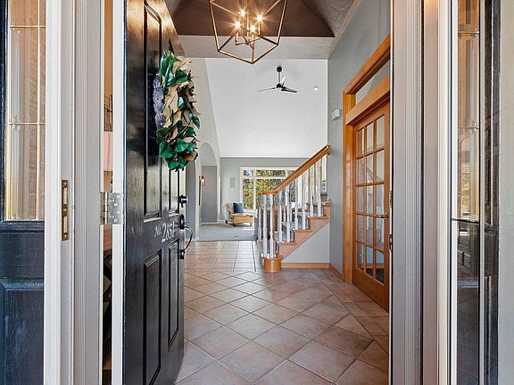 Stunning custom-built 4 bedroom 4-bath home on a 1.6-acre wooded lot in W DePere. Magical cathedral foyer and 2-story living room with grand fireplace, staircase, and breathtaking views. The main level features a chef's kitchen with granite countertops, an island, a large pantry, and a dining area that leads to a private oasis. Luxury maple cabinets, heated floors, 6-panel doors, and LVP. First-floor primary suite, flex room, bath, and office are a dream—3 large bedrooms upstairs and a flex room in LL. Rec area, theatre area, workout area, and bath in LL. 3+ extra deep garage with basement access. 2+- stall detached garage. Stamped patio, waterfall, and park-like yard. Updated roof, furnace, AC, and numerous other improvements and amenities. A few pictures AI staged