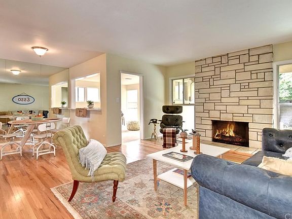 This move in ready Plaza home features a large bright living room with a wood burning fireplace. Large dining area. Refinished oak hardwood floors thru-out. Bright kitchen with natural wood cabinet, built-in stove, dishwasher & microwave plus small eating area. Cozy den with back yard access. Inside laundry. Master bedroom with walk-in closets. Full bath with Corian counter tops & shower over tub. 3/4 bath with upgraded tiled shower. Private low maintenance back yard with patio porch. Walking distance to schools & shopping. Close to freeways & El Dorado Park. This property is not for lease