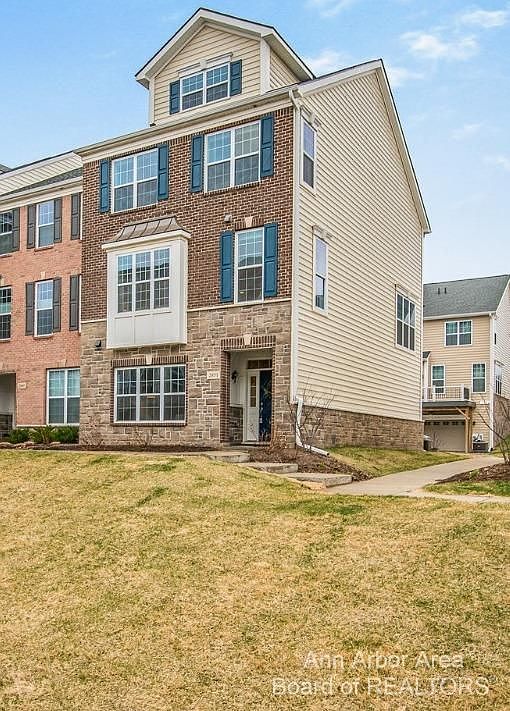 Check out the virtual tour! Impossible to describe everything! Live in one of the most desirable townhome communities in Ann Arbor, with a state of the art clubhouse and two swimming pools. This end-unit Bethesda Lexington floor plan has four levels of finished living space and 2,668 square feet above ground, flooded with natural light. The ground level has a finished flex/bed plumbed for a full bathroom. Upgraded flooring and quartz countertops throughout. The kitchen with a massive island is a cook's dream. Very flexible open living space on the same level is great for entertaining. The bedroom level is where the owner's suite (LUXURY BATH), two additional bedrooms, full bath and laundry are located. The top level is a finished loft/office/rec area with a rare rooftop terrace. Conveniently located in NE Ann Arbor close to UM Medical and North Campus, VA Hospital, Domino's Farms, retail and grocery shopping, bus routes, bike/walking paths and much more!