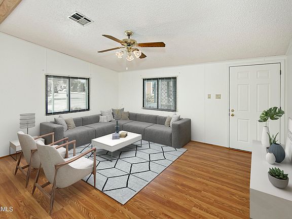Delightful, refreshed home in a quiet manufactured home park close to desirable amenities. ROOF TO BE RE-SHINGLED! This affordable home welcomes the natural light that fills the Living room and opens up to the Dining room with ample space to entertain your friends and family. The kitchen is bright & cheerful with an eat-in counter or personal workspace. Within the past 3 years, owners have installed new laminate flooring, a new gas furnace and a walk in shower in the primary bathroom. In 2022 the owners installed a new evaporative cooler and in February 2024 completed new interior paint and new carpet in both bedrooms. Enjoy your quaint covered patio space off the front porch. Includes a separate laundry room, storage shed, and room for all of your favorite Spring flowers and plants.