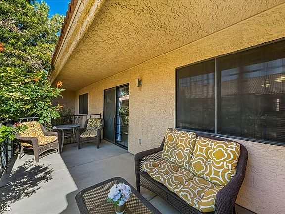 Experience vibrant 55+ resort-style living in a guard-gated Las Vegas community with park-like grounds and BBQ areas. Amenities include a clubhouse with a full kitchen and library, scheduled activities, and a sparkling pool and spa. This Move-in-Ready 2-bed, 2-bath single story townhome offers vaulted ceilings, a split floor plan, and wood-look porcelain tile in the living areas. The primary suite is set apart from the secondary bedroom. Skylights, a solar tube, and window coverings enhance light and comfort. Enjoy a covered patio and a covered carport steps from the front door. Prime location near Chinatown dining, shopping, the Las Vegas Strip, and Harry Reid International Airport. Make this home your own.