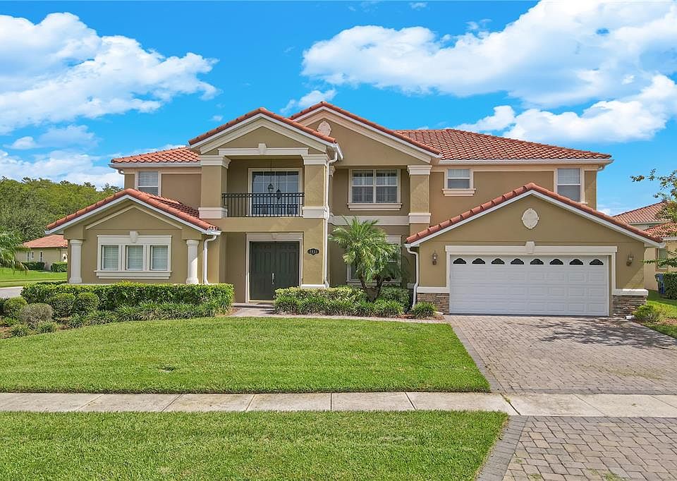 This elegant, modern Florida-style home on a corner lot, is located in the gated community of Avilla. It was purchased in 2014 but was never lived in. It’s a two-story 3,472 sq ft. with 5 ample bedrooms, 3 full baths, and a half bathroom. The tiled roof gives it a Florida charm, stately pillars bring a modern touch. The floors are tiled, while the bedrooms, family, bonus, and living rooms are carpeted. This home has room for the whole family and even space to entertain, columns frame the formal dining room. The kitchen has 42’’cabinets, stainless steel range, a dishwasher, a microwave, and a pass-through to let you and your guests feel connected. The spacious family room has an impressive ceiling of around 19 feet, and large picture windows, allowing plenty of light to shine. The laundry room located on the first floor has a laundry tub and cabinets above. Also on the first floor is the large master bedroom with a bathroom on-suite and a walk-in closet. Once upstairs you will find 4 additional bedrooms and a bonus room that overlooks the first-floor living areas. Including pre-wired for cameras and ceiling fans throughout the home, there are also more upgraded touches like rounded corners, hidden wooden Tilt Shutters in all windows, and 8’ doors in all rooms and closets. The home also has a 2 car garage, an energy-efficient hybrid hot water heater, and a covered patio. To add to this wonderful home, there are no CDDs, it has a low monthly HOA of $190, and a shared inter-community pool with a clubhouse; tennis and basketball court. Not to forget, it is centrally located near the Loop shopping center, miles away for Disney and SeaWorld including Universal Studio; Orlando International Airport last Hospital near by. *HOA Fees, home square footage, and taxes, lot sizes and schools are to be independently verified. Room Feature: Linen Closet In Bath (Primary Bedroom).