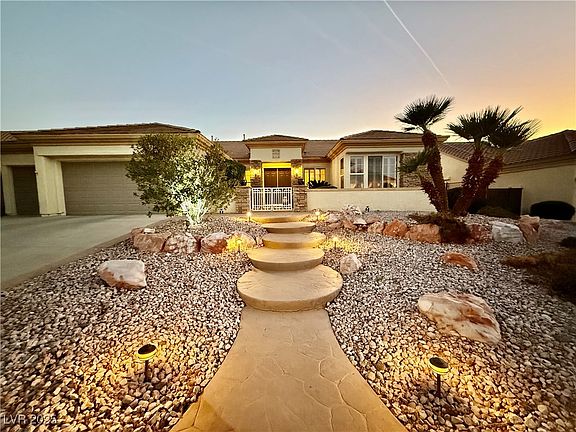 Come see this beautiful dream home w/ incredible golf course, city, & mountain views, & watch amazing sunsets from your backyard in the prestigious 55+ community of Sun City Anthem. This 2,769 sq. ft. 1 story residence features 2 primary bedrooms (each at opposite ends of the home), 3 baths, a den, & 3 car garage w/ built-in cabinets. Upon entry, your eyes are immediately drawn to incredible views of mountains & sky w/ no one behind you. Home includes a formal living room & dining room next to a wider entryway. The family room features a fireplace & media niches, along with/ a beautiful view. The kitchen offers abundant cabinet & countertop space, an island, double pantries, a breakfast bar, & a informal eating area. Main primary bedroom has a large walk-in closet, jetted tub, & walk-in shower. The backyard is the pinnacle of this home, perfect for enjoying the serene views of the golf course below, city lights, & stunning sunsets! Home has wood shutters & Rolladen Shutters on back!