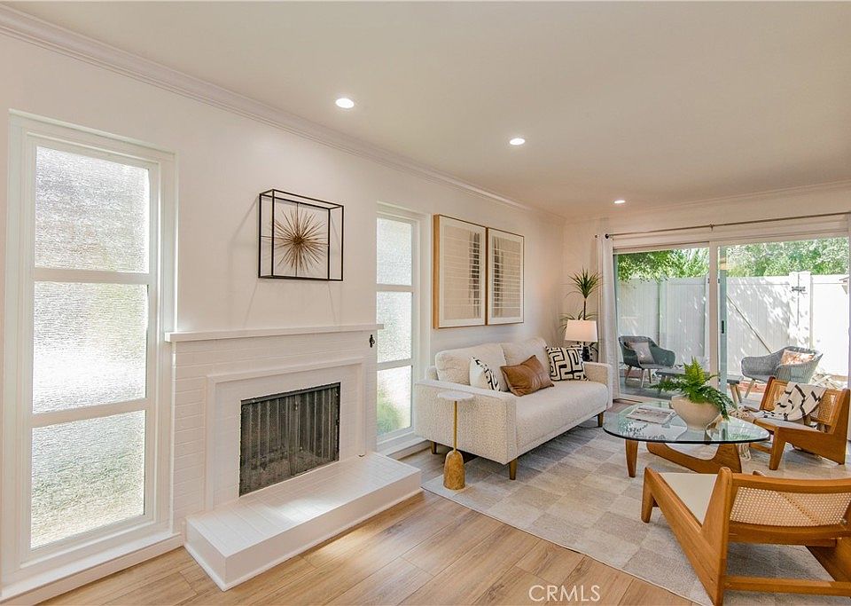 Inside, discover an open floor plan designed for both daily living and entertaining. A sleek, updated kitchen features contemporary cabinetry, quartz countertops, stainless steel appliances, ample storage, and in-unit laundry. The two tastefully redone bathrooms match the home’s fresh aesthetic. Luxury vinyl flooring flows throughout, adding a warm, cohesive feel.