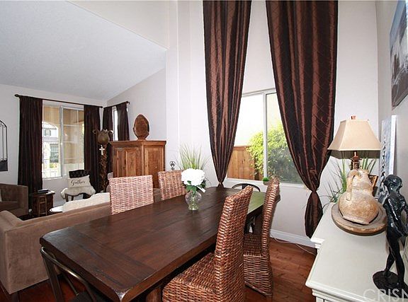 Beautifully upgraded Home well located in the foothills area of Santa Clarita. Granite Countertops in Kitchen with faux painted cabinets and newer Stainless Steel KitchenAid Appliances. Hard Wood Floors Downstairs with an open floor plan accented by Cathedral Ceilings. Bathrooms have Stone Tile and Wood Look Porcelain Floors and Granite Countertops. California closets in all bedroom closets. Nice back yard with custom pavers and grass with a large Patio Cover. Newer Fences already installed. Large Sparkling Community Pool and Spa as well as, Park with Pavilion and Basketball Court!California Distinguished and Award winning schools and close to everything!