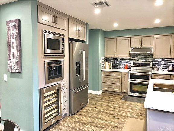 Modern and exquisite condominium located in the heart of Agoura Hills. This beautiful 3 bdrm, 2 bath condominium features all the upgrades of a luxury home. Starting with the highly remodeled kitchen, that features shaker gray cabinets, self closing drawers, quartz counter tops, staggered tile back splash, Kitchen Aid dual oven and a high end custom Jenn Aire coffee /cappuccino maker. The flooring is made out of a rustic gray laminate throughout the home. The 1st bathroom has been updated with modern finishes of Italian ceramic tiles in the bathtub and a sophisticated stainless steel rain shower head, along with modern gray cabinets and new sinks. The living room has new built in floating cabinet shelves that carries on the modern look of the entire home. High end Levolor style blinds make this beautiful space energy efficient along with the double paned windows.Hidden beneath the stairs is a modern shoe rack perfect for storing shoes or other items. Air conditioning unit is also fairly new and was replaced in 2014..... Located across award winning Agoura Hills High School and walking distance to many shops and restaurants. Only a 5 minute walk to the park and alleys.This homes features so much more and will not last.