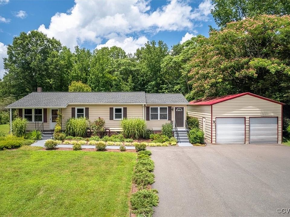 Set on a picturesque 1-acre lot, the property boasts a lush landscape adorned with vibrant flowers, mature plants, and a spacious fenced garden complete with cold frames—a dream for nature lovers and green thumbs alike. The ranch style home features 3 bedrooms and 2 bathrooms and includes an additional room perfect for multiple uses (office, playroom, craft, workout). Updates include a roof (6yrs), HVAC (4yrs) and oversized garage (3yrs). The remodeled kitchen includes new cabinets, new counters, and a gas stove. The property includes two outbuildings, a 20X10 shed and a huge oversized garage the is 42X21 and has 12 ft walls, there are 3 large roll up doors, making this perfect for any project or storage needs. Don't miss out on this great priced home located in a country setting yet conveniently close to the highway for quick commute to Richmond or Charlottesville.