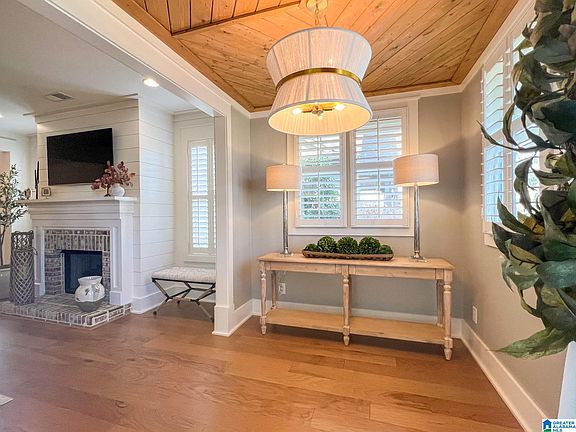 Fenced-in backyardFoyer of windowsOpen floor planBeautiful hardwood floorsNatural lightStunning light fixtureGorgeous wood ceiling treatment