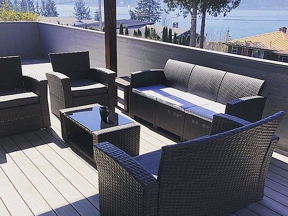 A dream home! Sloping lot has great sun exposure. Just across the street from waterfront so the view is spectacular. Modern home with large kitchen and maximized views...large deck with outdoor cooking area. 2 bedroom apartment below with covered patio. Separate storage area and workshop. RV parking with full hookups behind the house. Low maintenance landscaping. Private community well with fixed quarterly water payments. In an area of large and well maintained waterfront and water view homes. Minutes to I-5, Bellingham, or Canada.
