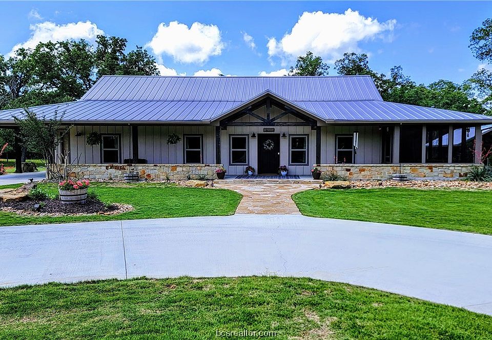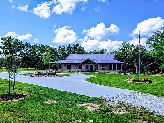 BEAUTIFUL CUSTOM COUNTRY ESTATE! Property is beautifully built and maintained on approx. 38 AG Exempt acres, fenced with cross fencing. 2078 SF (CAD) built in 2017, 3 bed, 2 bath and an office/study that could be a 4th bedroom. Vaulted Ceiling with large beams as you enter the home to a Large Living/Dining combo area. 12'x25' screened porch off the main living room. Laminate floors throughout with carpet in the 2 guest bedrooms. Large Master Bathroom with double sinks, separate bath and shower. Granite counter tops throughout home, with large center island in the kitchen. Attached one car garage and carport for add. parking under the house roofline. Property is approx. 50/50 wooded/open space with beautiful scattered oak trees around the home, with heavy woods in back. Approx. 1/2 acre stocked pond with small pier. Beautifully landscaped with washed rock flowerbeds, French drains, landscaped center island in concrete circle drive and auto sprinkler system. Aerobic Septic serves the home. Gorgeous, large pavilion for outdoor entertaining on 20’X24’ slab, covered. Large Cedar columns and limestone construction with metal roof. Barn is 36'x36' on slab, with roll-up doors. 12' extensions on both sides. Barn is plumbed for water and a potential bathroom with Field Line septic system. Additional 35'x65' concrete slab for barn or equipment storage. This property truly has it all for anyone looking to live the country life in style and comfort. Franklin ISD. THIS ONE IS A MUST SEE!