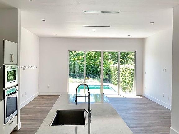 Gorgeous and spacious 3 bed and 3.5 bath townhouse with pool. This townhome features high volume ceilings with all recessed lighting. Tile floors througout that look like wood planks. Formal living and dining room, family room. Cooking island at kithcen with all white custom cabinets, marble countertops and stainless steel appliances. All hurricane impact windows. Very light and bright unit. Family room leads out to pool and patio area. washer and dryer in the unit. Two car garage.