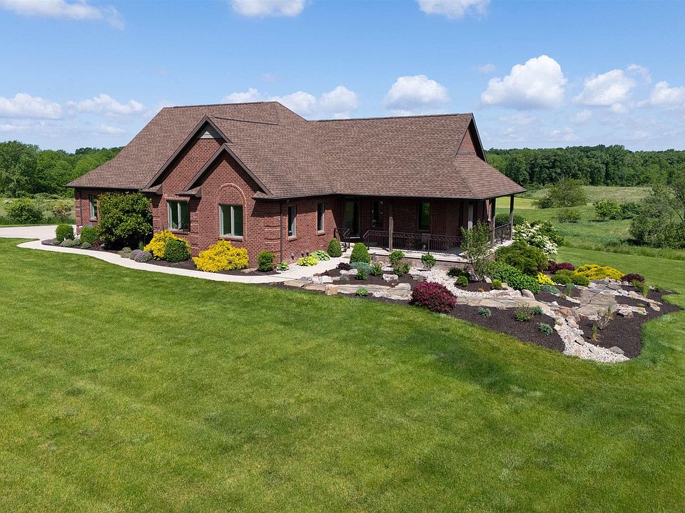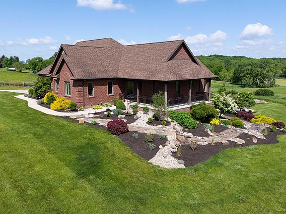 Nothing quite like this one! This gorgeous custom built ranch on walk out basement is nestled on 15.8 acres with rolling hill views. Open concept with 2 full kitchens and 2 living spaces. There are 4 bedroom total, with 3 full baths. The master bedroom has a terrace overlooking nothing but scenic landscape and wildlife. Heading to the lower level, you will notice a one of kind stairwell with custom craftsmanship. The lower level also includes a full kitchen with granite countertops, a safe room, and additional laundry room. Every room of this home is filled with large windows to capture the property’s beauty no matter where you are. Home includes hide-a-vac system, Revers osmosis system, security system. This property includes open pastures and a historic bank barn, as well as another site with an existing well and septic for future home