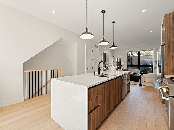 Welcome to this exceptional newer-construction duplex down offering the perfect blend of luxury, style, and functionality in one of Chicago's most vibrant neighborhoods. Located in the heart of Logan Square, this three bedroom, two and a half bathroom home delivers the ideal combination of modern design and timeless sophistication - crafted for today's discerning homeowner. Step inside to discover an open concept living space bathed in natural light, featuring soaring ceilings, oversized windows, and sleek finishes that create an airy, inviting atmosphere. The spacious living and dining area flow seamlessly into the designer chef's kitchen, where form meets function with custom cabinetry, high-end stainless-steel appliance package, and an expansive waterfall island perfect for entertaining. Every detail is thoughtfully curated to create a space that feels both refined and comfortable. Downstairs, the private bedroom level offers an intimate retreat from city life. The primary suite impresses with its generous proportions, a large walk-in closet, and a spa-inspired en-suite bath showcasing a double vanity, modern custom cabinetry, designer tile, and a substantial glass-enclosed shower. Two additional bedrooms provide flexibility for guests, a home office, or a fitness space, while the second full bath and convenient laundry area enhance everyday ease. The home's transitional modern aesthetic strikes a balance between bold contemporary lines and warm, welcoming materials. Wide-plank hardwood flooring, designer lighting, and sophisticated tile selections create a cohesive, elevated look throughout. With premium craftsmanship evident in every corner, this residence embodies the best of modern urban living. Outdoor enthusiasts and entertainers alike will love the expansive rooftop deck atop the garage, a rare and coveted feature that offers a private oasis for hosting gatherings, grilling, or simply enjoying an city evening. Garage parking is included for effortless convenience, adding to the home's long list of desirable amenities. Perfectly situated in Logan Square, residents are just moments from the neighborhood's best dining, shopping, and nightlife. Enjoy easy access to the 606 Trail, local cafes, boutique shops, and iconic Chicago restaurants. Commuters will appreciate the proximity to public transportation, major roadways, and downtown Chicago-all while experiencing the charm and community spirit that make Logan Square one of the city's most sought-after enclaves. This home represents a rare opportunity to own a newer construction home without the new construction premium, that balances architectural elegance with everyday comfort in an unbeatable location. With its exceptional finishes, thoughtful design, and outdoor living spaces, this property delivers a lifestyle that's as impressive as it is inviting. Experience modern luxury, Chicago character, and effortless living-all in one stunning Logan Square home.