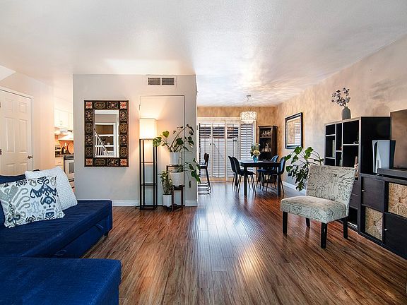 This beautifully upgraded townhome combines modern amenities with a prime location. Recent improvements include an energy-efficient HVAC system (installed June 2023), a newly upgraded water tank (larger size, installed June 2023), a new roof (installed in 2019), and new windows in all bedrooms. The spacious kitchen features updated cabinets (February 2025), stainless steel appliances, and ample counter space, perfect for cooking and entertaining. Additional comforts include ceiling fans in every bedroom, a whole-house water filtration system, and a Culligan drinking water purification system. Two private patios, one with a storage closet, provide outdoor space, while the in-unit washer and dryer add convenience.