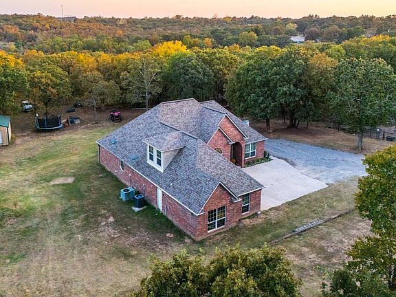Tucked away on 5 ± peaceful acres in Creek County, this stunning 4-bedroom, 3.5-bath home offers the perfect blend of space, comfort, and country living! The 2,600 ± sq ft home is beautifully designed with an open-concept living room and kitchen, ideal for family gatherings or entertaining. The kitchen and entryway feature tile flooring, while the bedrooms and living areas include soft carpeting for comfort. The kitchen showcases elegant wooden cabinetry, granite countertops, and plenty of space for cooking and hosting. At the front of the home, a formal dining area welcomes guests, and the master suite features a luxurious jacuzzi tub for relaxation. Upstairs, you'll find a spacious bedroom, a full bath, and additional attic storage space. Outside, a covered back porch provides the perfect spot for grilling or unwinding while enjoying the peaceful scenery. The property includes an attached two-car garage, a sturdy equipment shed, and an in-ground storm cellar for safety. A portion of the acreage is fenced and features a pond stocked with bass, as well as a horse shed-making it ready for a few horses or other livestock. This property is also equipped with a 17.99 KW ground-mounted solar panel system and a hardwired security setup, offering both efficiency and peace of mind. Located just 14 ± minutes from Bristow, 25 ± minutes from Tulsa, and about 1 hour and 17 ± minutes from Oklahoma City, it combines country living with easy access to city conveniences. Secluded, well-maintained, and thoughtfully designed, this property offers the perfect family home in a peaceful country setting-with all the space, beauty, and functionality you could want! All showings are by appointment only. Disclaimer: The boundary lines shown are approximate and are provided for general reference only. AHLC makes no representations or warranties, express or implied, as to the accuracy, completeness, or reliability of those property lines. Buyers are advised to obtain an independent survey to verify exact property boundaries.