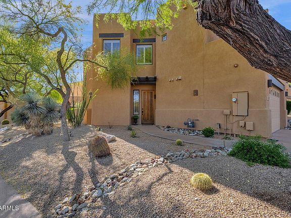 This 2br/2.5ba unit is located in the resort community of Troon North. The open floor plan includes a great room w/ high ceilings, updated kitchen and a cozy gas fireplace. Add'l features include brand new roof, appliances, hot water heater, and HVAC. Convenient direct entry 2-car garage. Upstairs you will find two primary suites with walk-in closets, dual sinks and private showers. Both rooms feature balconies for enjoying views of the desert landscape and Pinnacle Peak. Low property taxes and HOA dues make this easy desert living! Conveniently located near the Troon Clubhouse and Sonoran Mountain Preserve trail system.