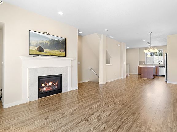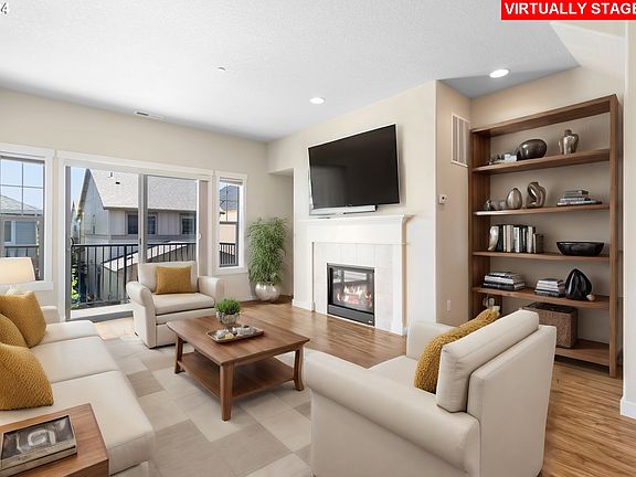 Welcome to a pristine haven in the heart of beautiful Villebois! This immaculately maintained community offers something for everyone! Inside, find two suite like bedrooms that have attached bathrooms. The primary bedroom has vaulted ceilings, a large closet and a view of the club house and surrounding area. The 2nd bedroom has a beautiful view of Mt. Hood. The living spaces feature a cozy gas fireplace, a spacious balcony, elegant Hunter Douglas blackout shades, and a deck off the living room. The kitchen is equipped with tasteful granite counters, a stylish tile backsplash, a gas stove with an over-the-range microwave, undermount double sink, shaker cabinets, refrigerator with ice maker and stainless steel appliances. Additional features include durable laminate floors, oversize 1 car garage, washer and dryer and linen closet. The versatile living room on the main floor, with an attached bath, is ideal as an office or playroom. Comfort and convenience are further enhanced with an efficient gas furnace and air conditioning. Located directly across from the clubhouse, you'll have easy access to an array of amenities including a recreation center, pool, gym, community garden, party room and work areas. Experience the perfect blend of modern living and community charm in Villebois!