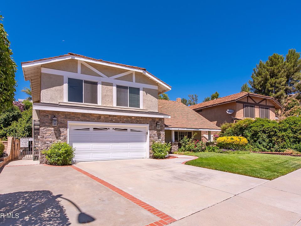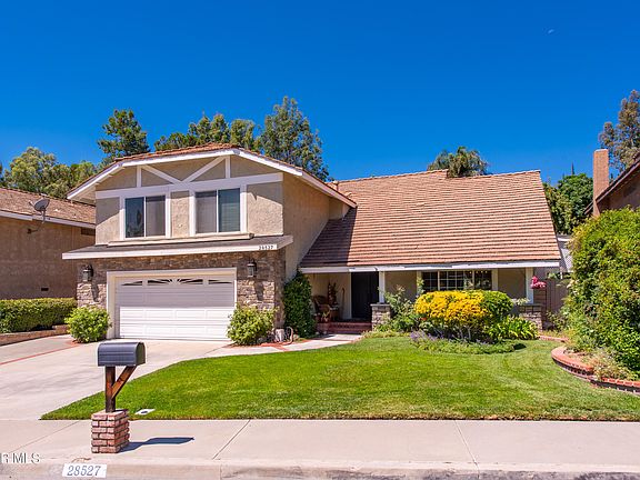 Exquisite Saugus pool home located in the desirable Mountain View tract! Beautiful curb appeal with stacked stone on the front and a porch to cozy up by to enjoy the mountain views. As you walk through the front door you are welcomed with vaulted ceilings. Kitchen features granite countertops, tile backsplash, custom cabinets, breakfast bar, and stainless steel appliances. The formal dining room is adjacent to the gourmet kitchen. Remodeled downstairs bathroom with barn door leading to the indoor laundry room with built in cabinets and rack. Upstairs you will find new carpet and 4 bedrooms. Master bathroom has granite countertops, dual sinks, and tile shower. Upstairs guest bathroom has been remodeled with quartz countertop and tile tub/shower. Entertainers backyard with vaulted covered patio, spacious grass area, sparkling pool and spa, hillside leading up to mountain views and storage shed.