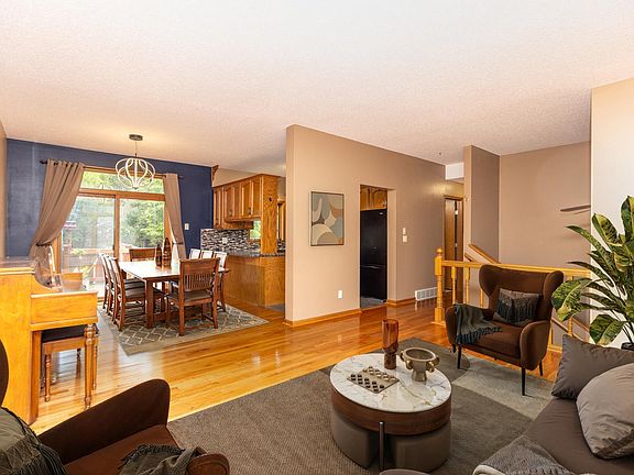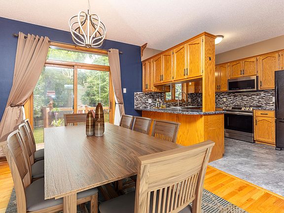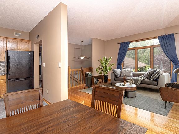 Beautiful Kochman built bi-level on a large fenced corner lot with established trees. Home features metal siding, oak hardwood floors, two storage sheds and a fenced garden area. Lower level is a spacious family room with gas fireplace, built-ins, and was recently remodeled for a warm updated living space. Recent updates; Dishwasher, Range, Furnace, water heater. Also an existing radon mitigation system.