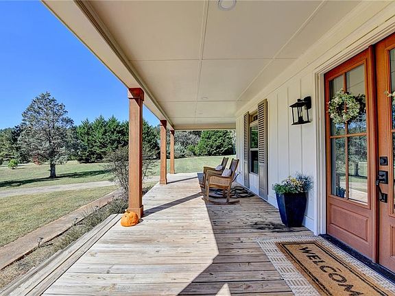 This masterpiece of a home has been completely renovated. It sits on 4.59 level acres, blending modern updates with timeless charm. As you enter the foyer through double doors you are greeted by a sweeping staircase and new and refinished hardwood floors through-out. All New Pella windows along with custom Crown molding through-out. The custom kitchen is a delight, with stainless steel luxury brand appliances, featuring quartz countertops, an oversized island with seating, floor to ceiling cabinetry, a custom made hood adorns the room, open to the family room with vast views to the exterior. The kitchen flows seamlessly into the family room with Custom wet bar and stain glass transoms flank each side of the fireplace. A breakfast room and keeping room complete this sun filled section. The main level offers a spacious primary suite with his/hers walk-in custom closet and an all new luxurious bathroom with heated floors, double vanity, a beautiful seamless glass shower and a separate soaking bathtub. The counter tops and cabinets match throughout the house. The laundry room connects to the primary bath adding both convenience and appeal. One additional bedroom on main has a beautifully updated full hall bathroom with glass shower and vanity. Upstairs, a second master provides flexible space for a teen suite, or guest suite. Jack-n-jill bath connect to a charming 4th bedroom with reading nook and large walk-in closet. Outdoor living is equally inviting, with expansive back deck overlooking fruit trees in private backyard, enjoy the big game on the covered screened-in porch off the family room. Home was freshly painted interior & exterior, re-sided with Hardie board, All New city Water lines installed and a working well for irrigation if you so choose, new plumbing features, new water heater, new carpet in upstairs bedrooms and closets, new front, back and side doors, new garage doors, all new upscale lighting by Uttermost, all new receptacles and switches. With countless upgrades throughout, this home feels brand new - but comes without the new-home price tag. This is a Must See!